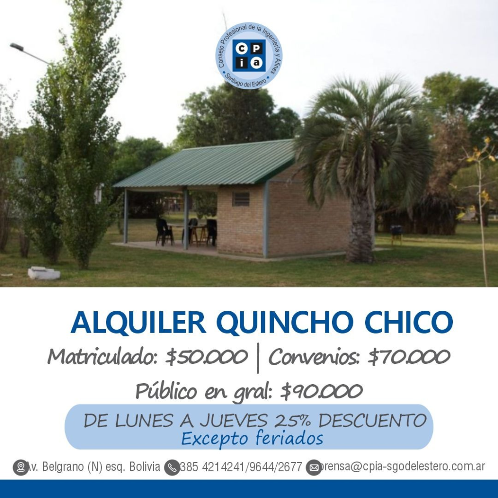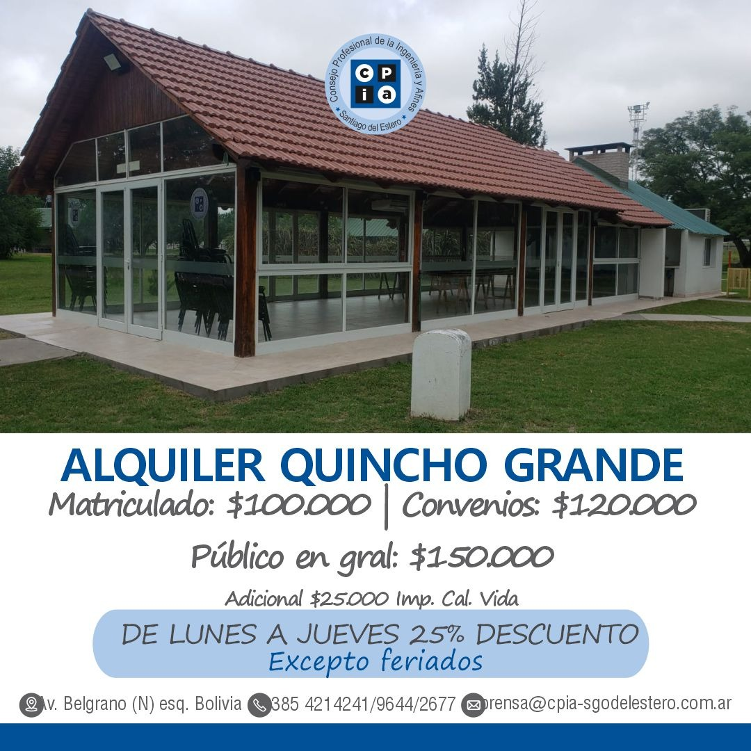 HORARIO TRAMITE PARA ALQUILAR: 7.30 a 16.00 hs (SEDE CPIA)